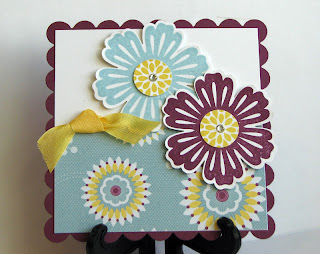 accessories: floral district dsp, daffodil seam binding, square scallop die, bouquet flower punch, 3/4 inch circle punch, popdots, rhinestones