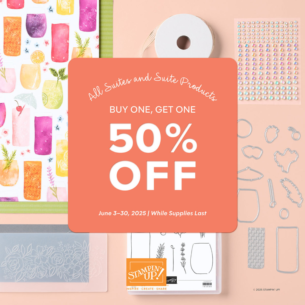 A. We like to think all of our Stampin’ Up! products are pretty sweet, but a suite product is anything that can be purchased as part of a suite—think stamp sets, bundles, dies, embellishments, ribbon, and more! Of course, full suites are also included! The easiest way to check? Head to my Suites page in my online store (listed above)